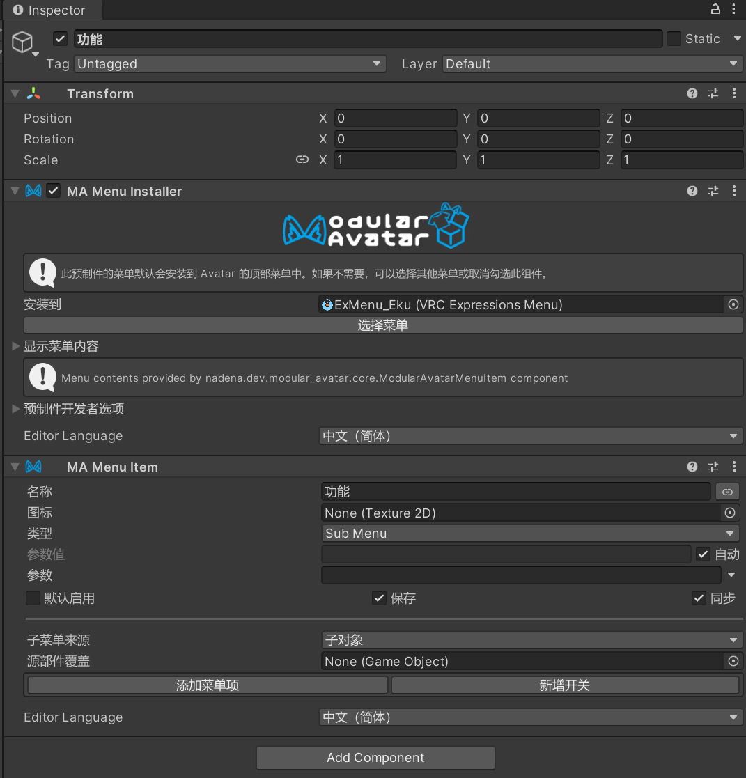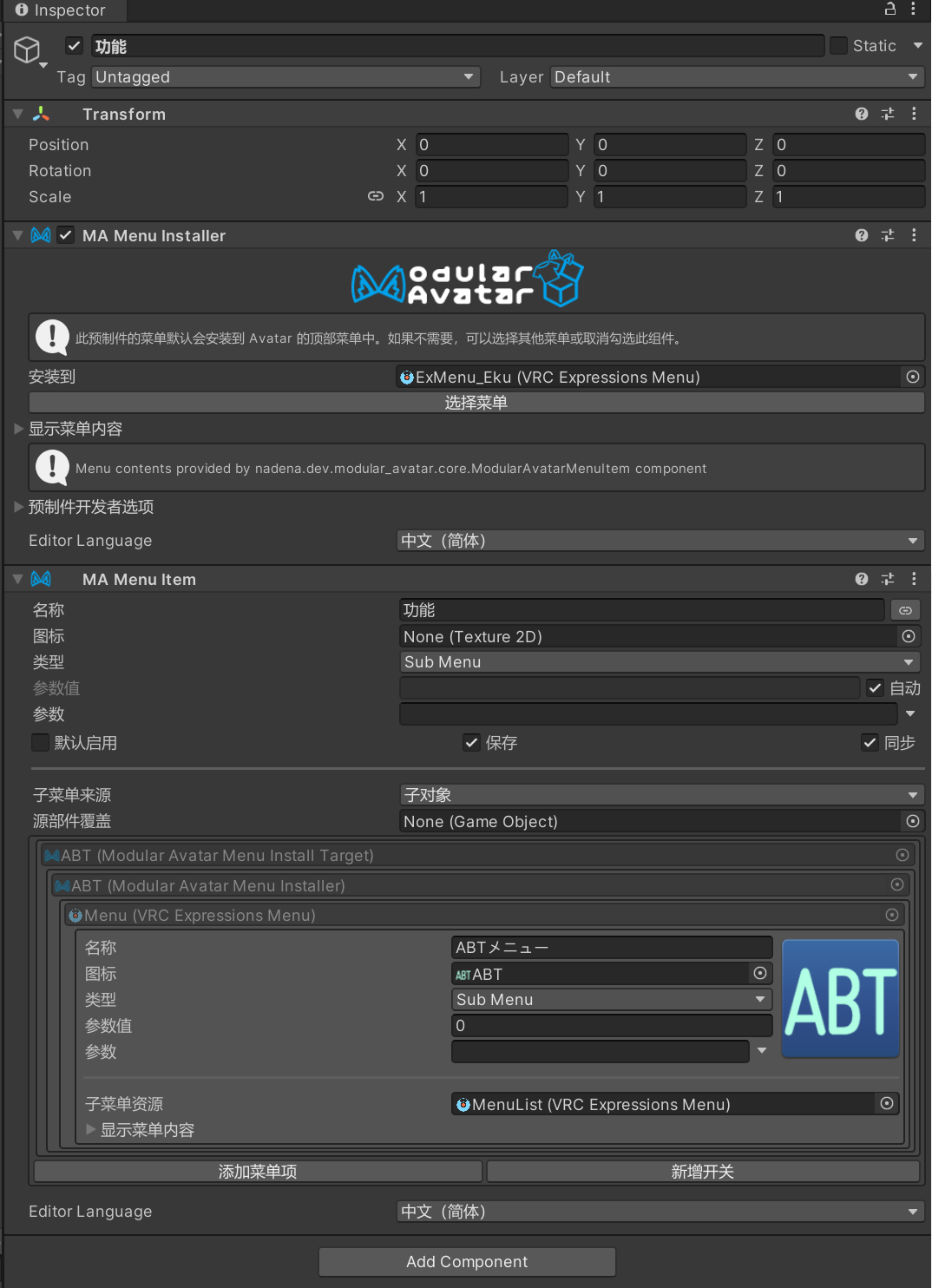 下面修改ABT菜单位置。首先确保菜单对象内有这些组件。