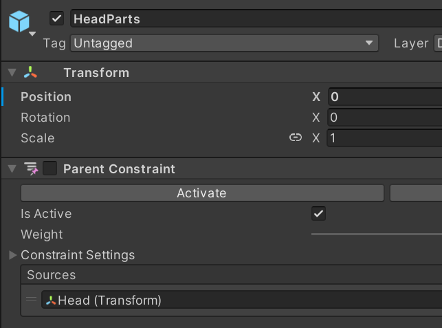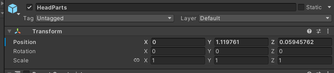 4) 打开ABT层级,点击HeadParts对象,然后将ViewPosition值填入HardParts对象的Position参数中。