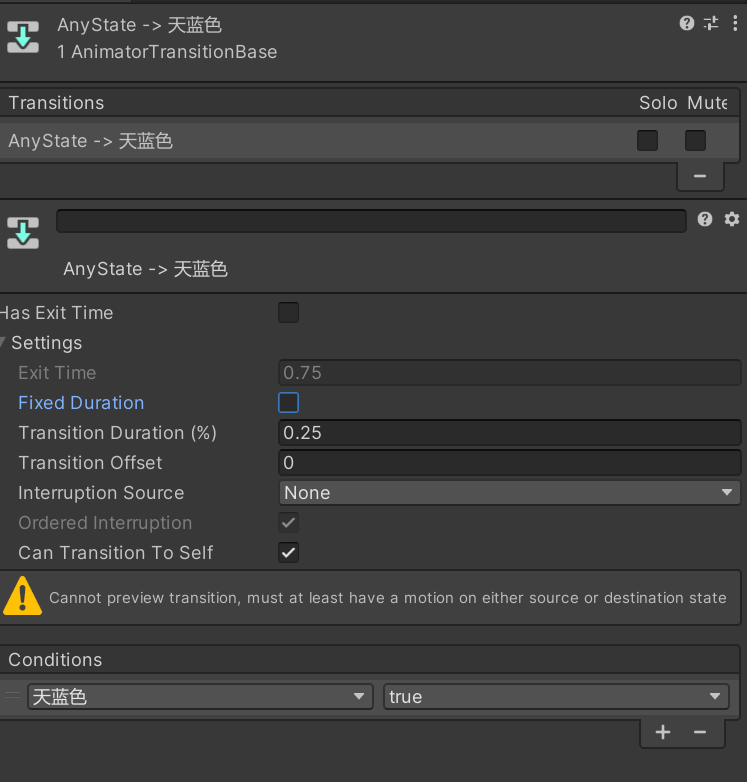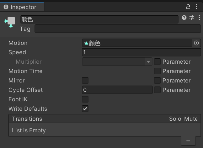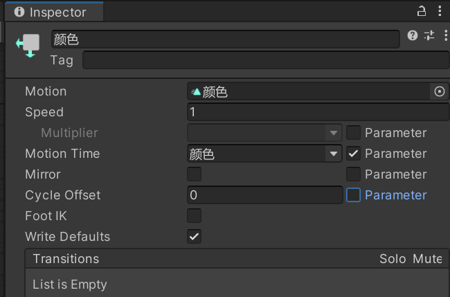 11)然后点击刚刚创建的对象,勾选Motion Time的Parameter,参数选中刚刚添加的变量。