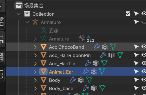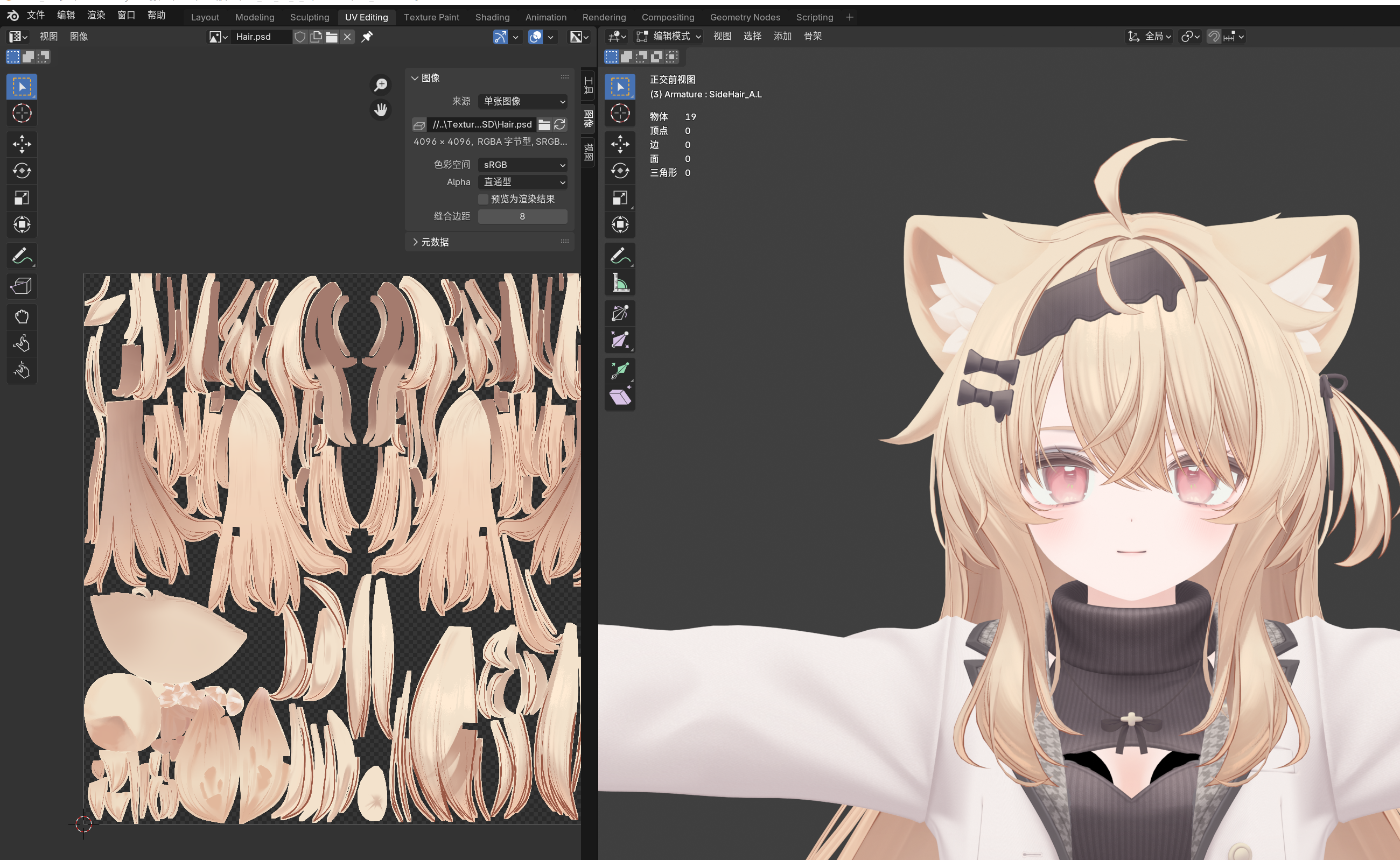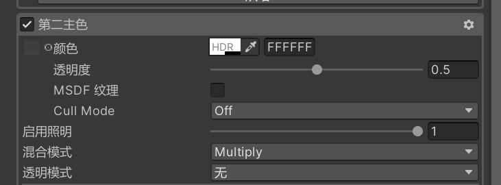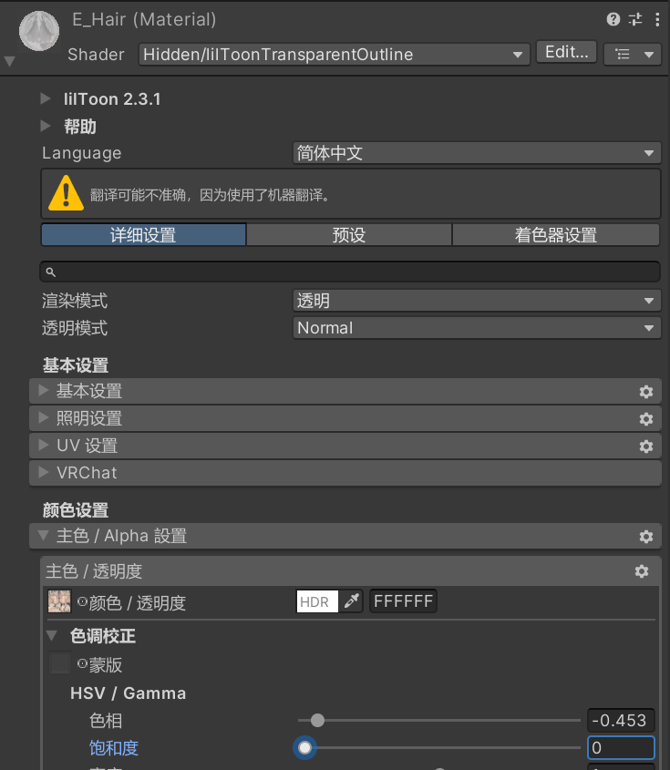 12)在模型中找到和头发有关的对象,并且修改着色器的主色饱和度为0。并且打开着色器的第二主色。