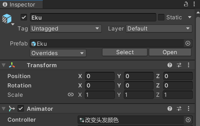 3) 将动画控制器添加到模型的Animator组件的Controller上。