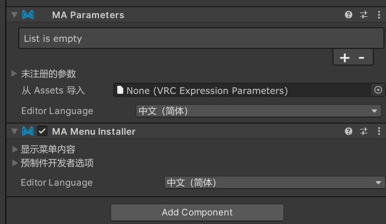 40)然后再添加MA Parameters和MA Menu Installer,MA Menu Item,